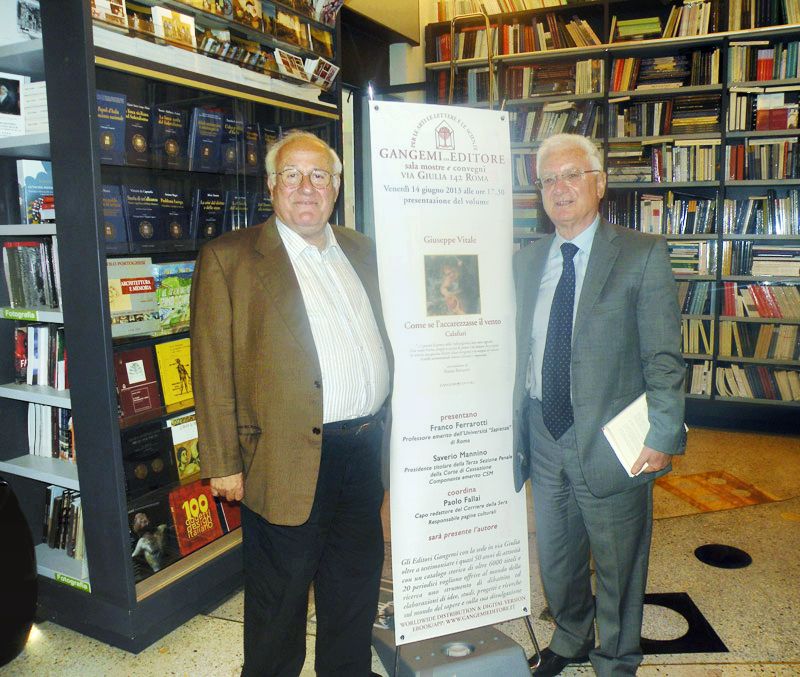 Venerdì 14 giugno, alle ore 17.30, presso la Sala Mostre e Convegni Gangemi Editore di Roma, Via Giulia 142, verrà presentato il volume Come se l’accarezzasse il vento. Calafuri, di Giuseppe Vitale, Presidente Aggiunto Onorario della Corte Suprema di Cassazione, pubblicato per i tipi della Gangemi editore.