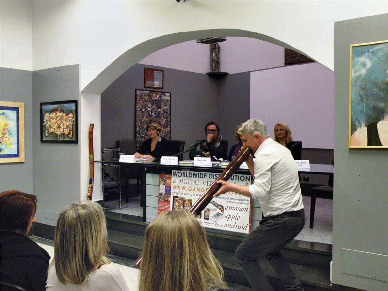 Le note del didgeridoo di Antonio Biondi “canteranno al giallo”, secondo la cultura aborigena australiana, per onorare le opere esposte.