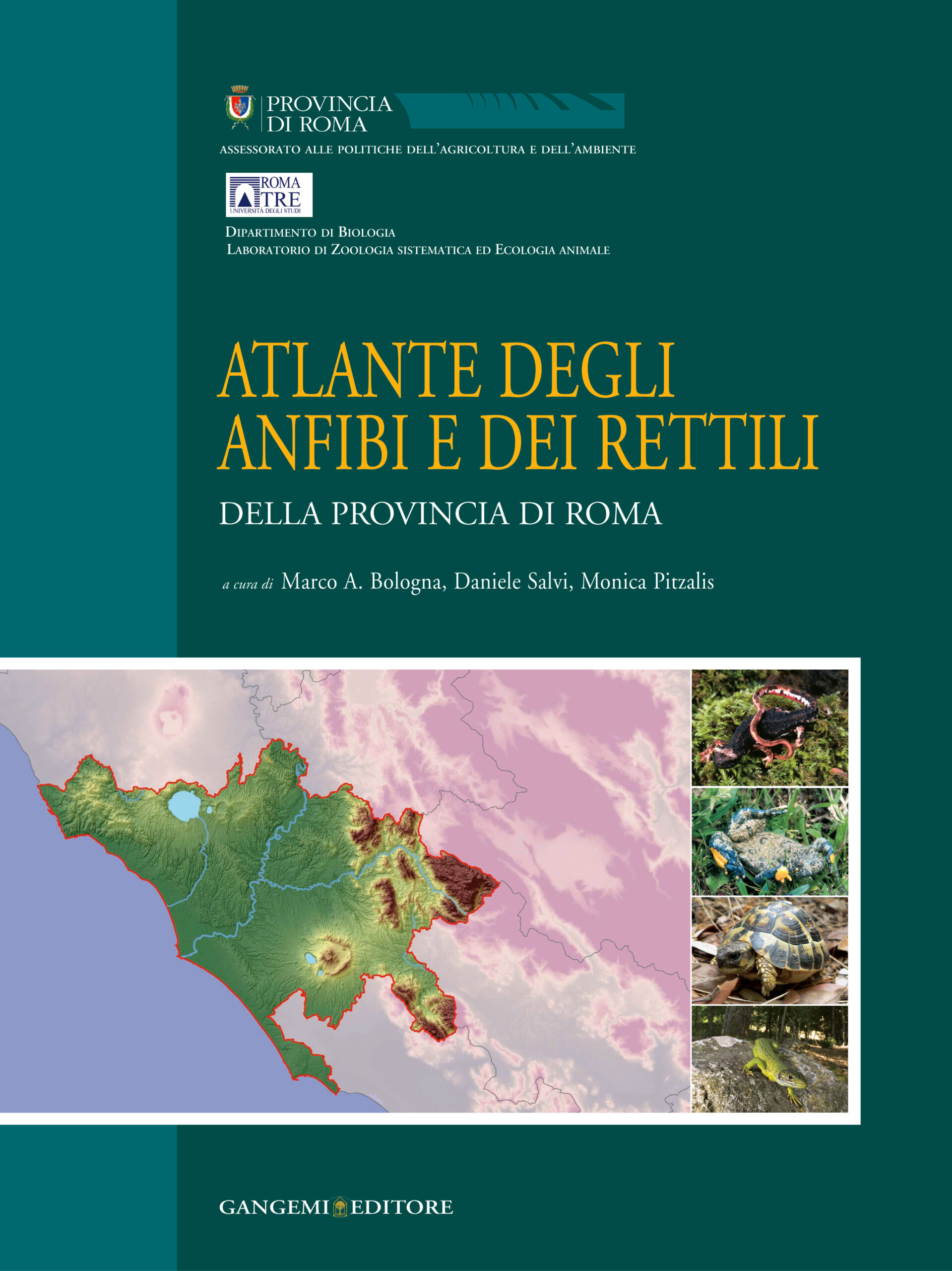 The knowledge of the ecological and geographical distribution of animal species is a basic requirement for the conservation of biodiversity and territory planning. This volume represents a synthesis of previous and current knowledge on Amphibians and Reptiles of the Province of Rome. A total of 13 species of Amphibians and 18 of Reptiles inhabit this area, some of them being widespread whereas others, such as the Apennine yellow bellied toad and the four-lined snake, having a relictual distribution and a high conservation value. Amphibians, at least during reproduction, are dependent on wetland, so that their conservation passes trough the preservation of ecological functionality of this habitat type. On the other hand, Reptiles, apart from a few semi-aquatic species, are good bioindicators of forest and maquis habitats. Since both groups of vertebrates are predators, they are threatened by the increasing habitat fragmentation.