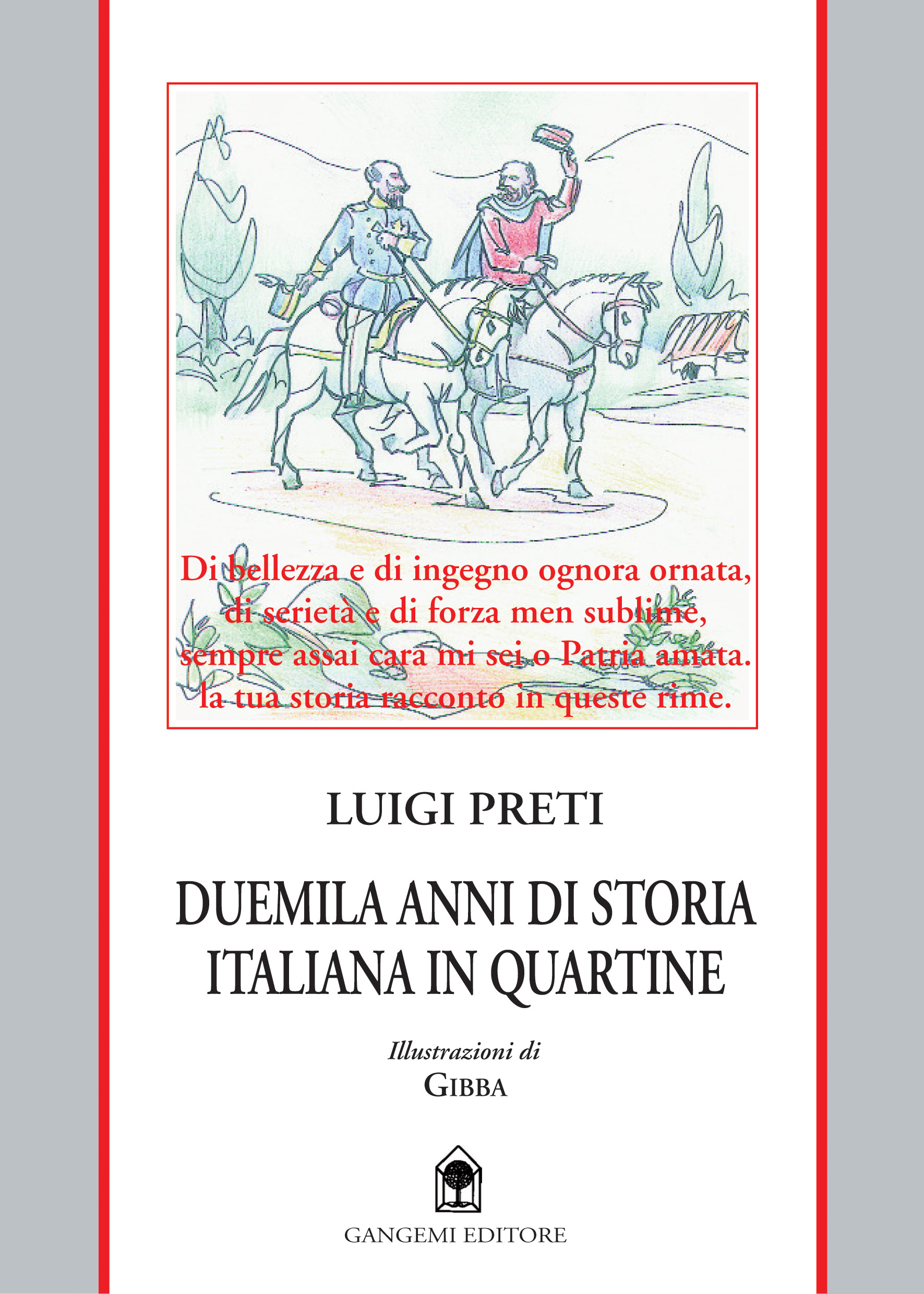 In quartine di endecasillabi – come nei precedenti “Frammenti di memoria” autobiografici in questa stessa collana – Luigi Preti offre un piacevole excursus attraverso due millenni di civiltà romana-italiana-europea, rivisitata con una visione unitaria e continuativa. I colori vivaci di questo affresco e i risoluti giudizi critici su eventi e personaggi rendono la ricostruzione storica di Preti di facile ricezione per un ampio pubblico di lettori. Se poi si lambisce per questa via il genere nazional-popolare, l’autore è l’ultimo a preoccuparsene, essendo stato egli coerentemente fedele, in tutta la sua vasta produzione storiografica, letteraria e drammaturgica, alla funzione civile dello scrittore. Così avviene in ciascuna di queste 567 quartine, comprensibilmente con più intensa carica di appassionata compartecipazione nella parte relativa al nostro tempo, stante il lungo impegno politico dell’autore. È questo in sintesi il contrassegno di una singolare esperienza, civile e intellettuale, che consente a Luigi Preti di dare una conclusione filosofica affidata al lettore per una sua personale meditazione.