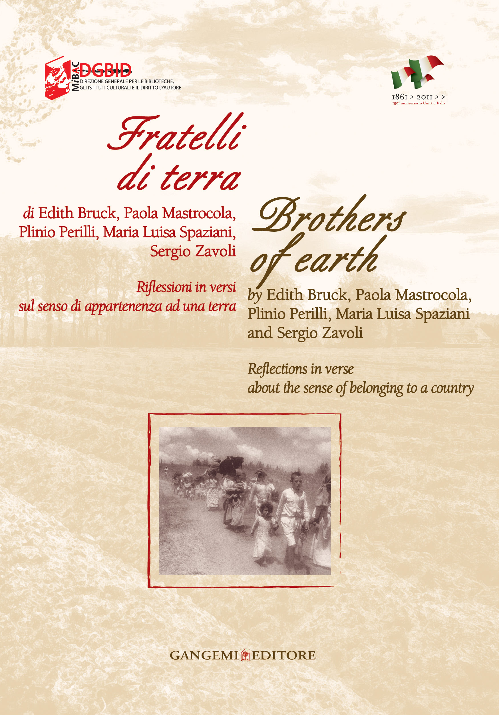 In this book Edith Bruck, Paola Mastrocola, Plinio Perilli, Maria Luisa Spaziani and Sergio Zavoli reflect on the true meaning of people’s sense of national identity. In their poetry the Nation is the Mother Earth whose fragrances, colours, beauty and language makes us who we are. But she is also a Stepmother who turned generations of fellow citizens into emigrants and refugees, forcing them to flee in search of a new life, culture and fortune in countries thousands of miles away from their Motherland. Heroes and common people were behind the making of the Nation during the Italian Risorgimento. A lost, troubled motherland, but also a symbol of brotherhood, commonality and human solidarity. It is the Promised Land, a place of immigration and choice, but often indecisive, indefinite and ambiguous. The book has been published and translated into English in collaboration with, and financed by, the Directorate General for Libraries, Cultural Institutions and Author’s Rights of the Ministry for Cultural Heritage and Activities. It will be presented at the International Festival “Divinamente Roma” and “Divinamente New York” 2011, organised by Pamela Villoresi, as part of the celebrations for the 150th Anniversary of the Unity of Italy.